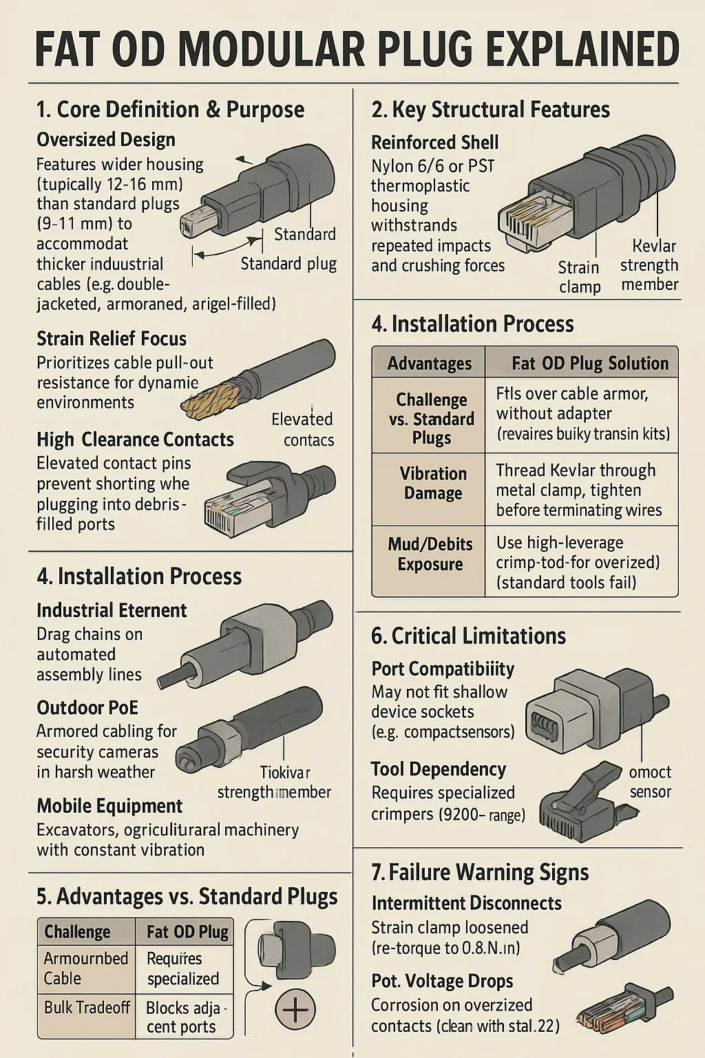 تصميم كبير الحجم: يتميز بغلاف أوسع (قطر 12-16 مم عادةً) من المقابس القياسية (9-11 مم) لاستيعاب الكابلات الصناعية الأكثر سمكًا (على سبيل المثال، مزدوجة الغلاف، أو المدرعة، أو المملوءة بالهلام).