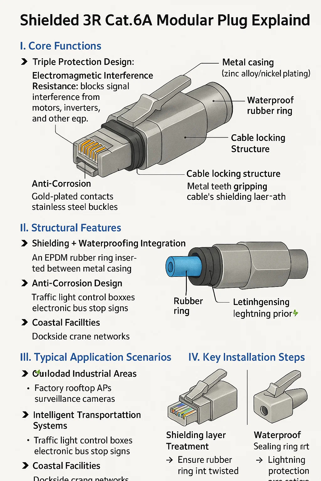 محمية 3R Cat.6A المكونات المعيارية وأوضح