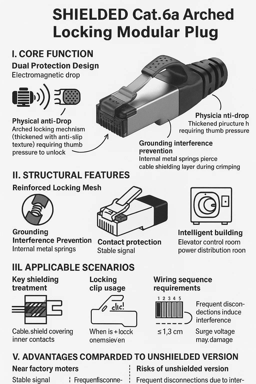 شرح مفصل ل محمية Cat.6a المكونات وحدات قفل مقوس