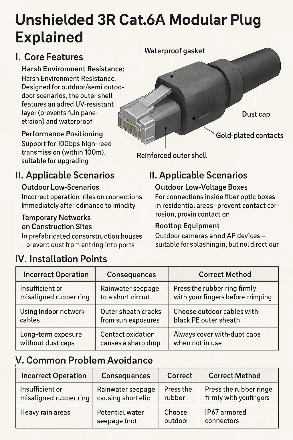 المكونات المعيارية غير المحمية 3R Cat.6A وأوضح