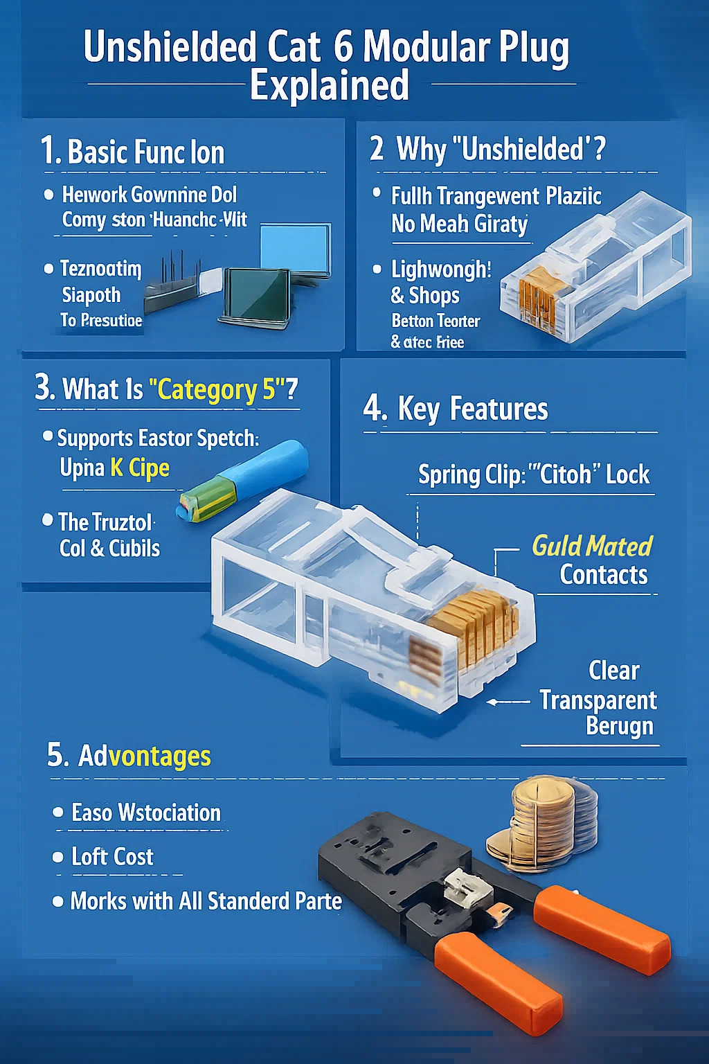 نقل الإشارة: على الرغم من صغر حجمه، إلا أنه يحتوي على عدة وصلات معدنية صغيرة تعمل على نقل الإشارات الكهربائية من كابل الشبكة إلى الجهاز بسلاسة، حيث يعمل بمثابة "السنتيمتر الأخير" من اتصال الشبكة.